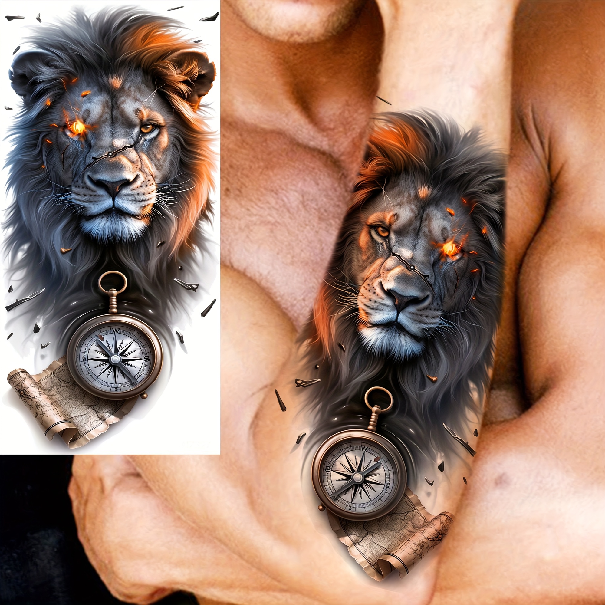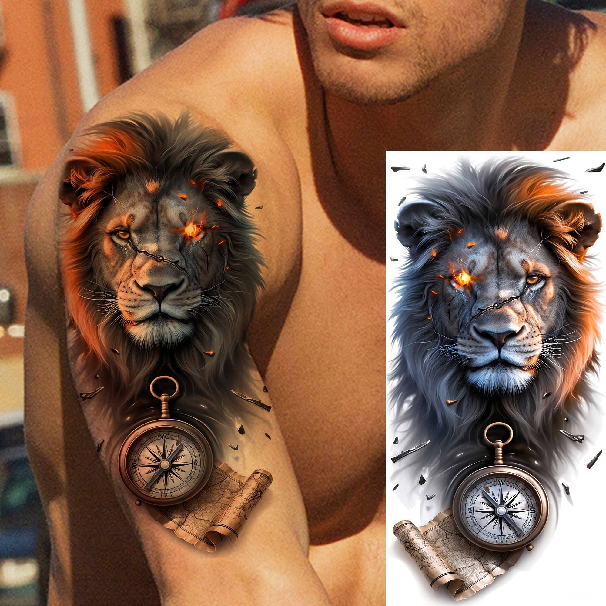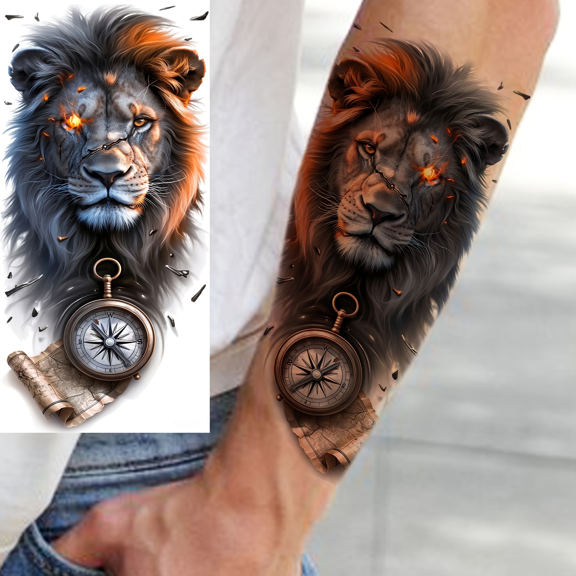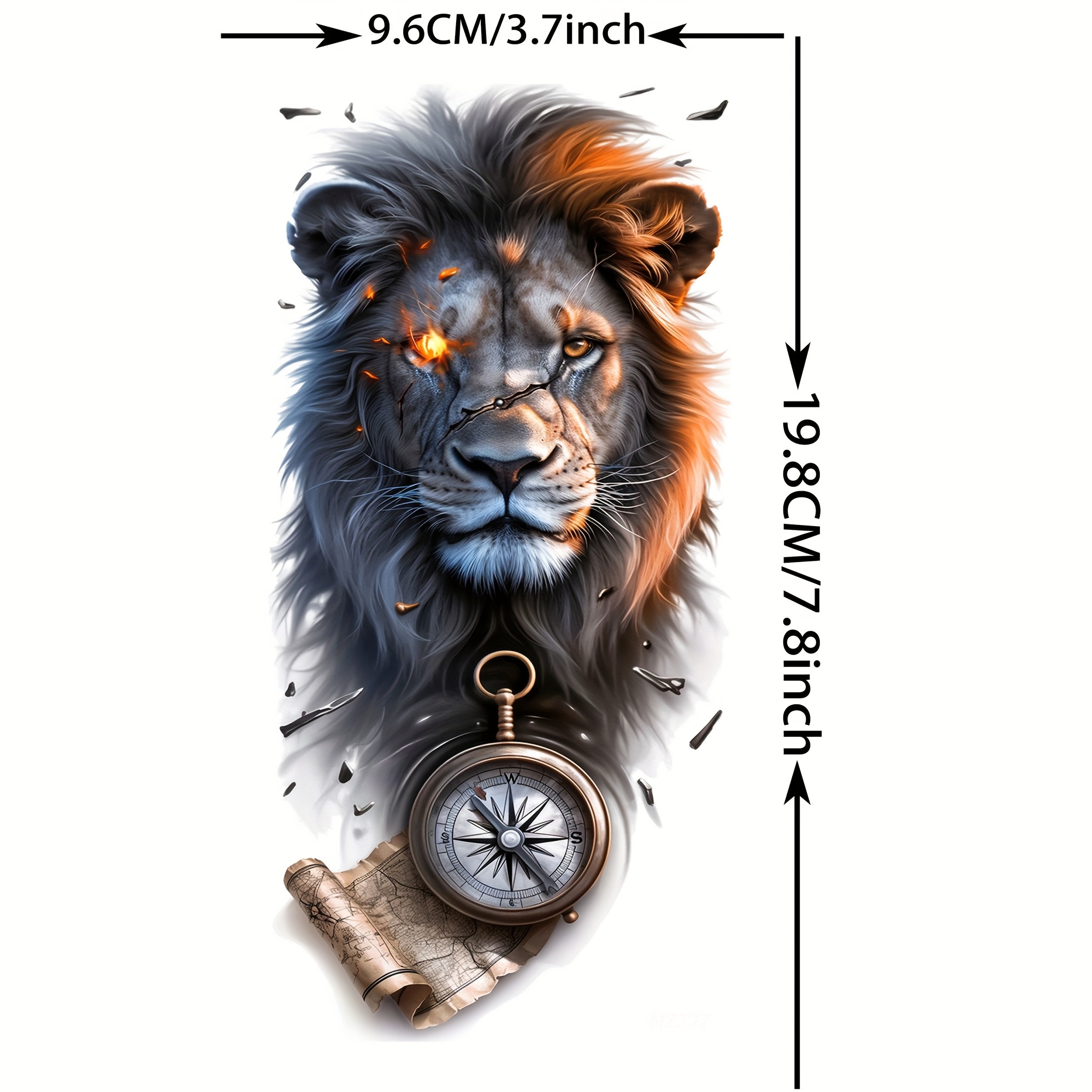 קעקוע זמני של מפת מצפן אריה אחד לגברים ונשים – עמיד במים לאורך זמן לזרוע, ירך, שריר הזרוע הקדמי ומדבקה לאמה עם עיצוב ימי מפורט, קעקוע ימי|עיצוב נועז|מדבקה עמידה במים