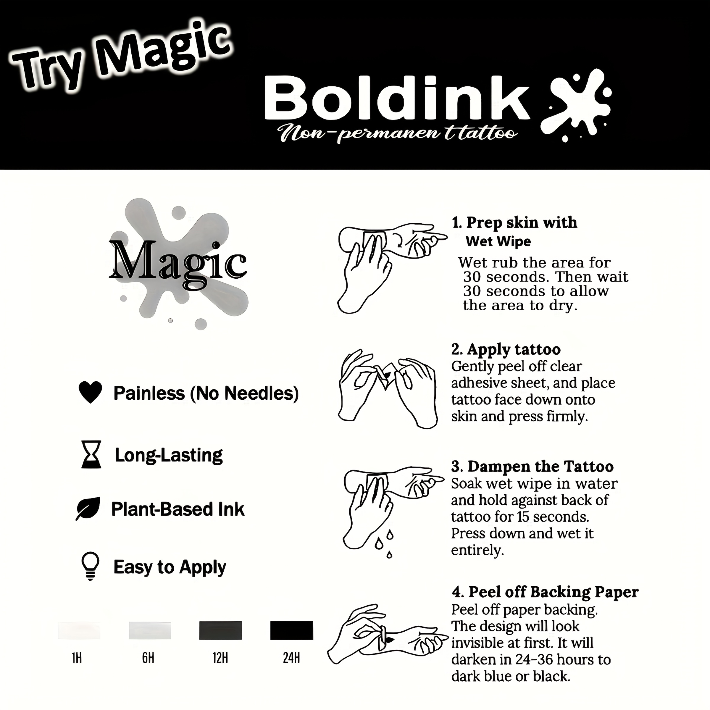 Boldink מציע טכניקת דייטינג עמומה עם עיצובי אותיות שנראות טבעיות ואמיתיות. היא עמידה במים, קלה להתקנה ומשכה 1-2 שבועות, עושה אותה אופציה מצחיקה לדייטינג.